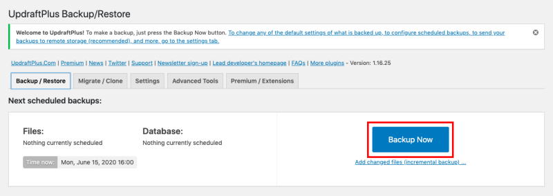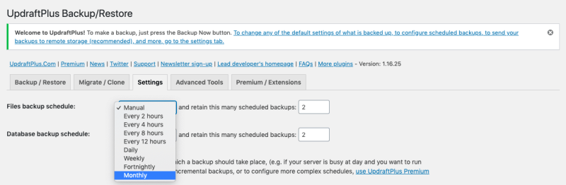 If you want to perform scheduled auto backups, go to the settings tab, and schedule the backup period in the files backup schedule selection.