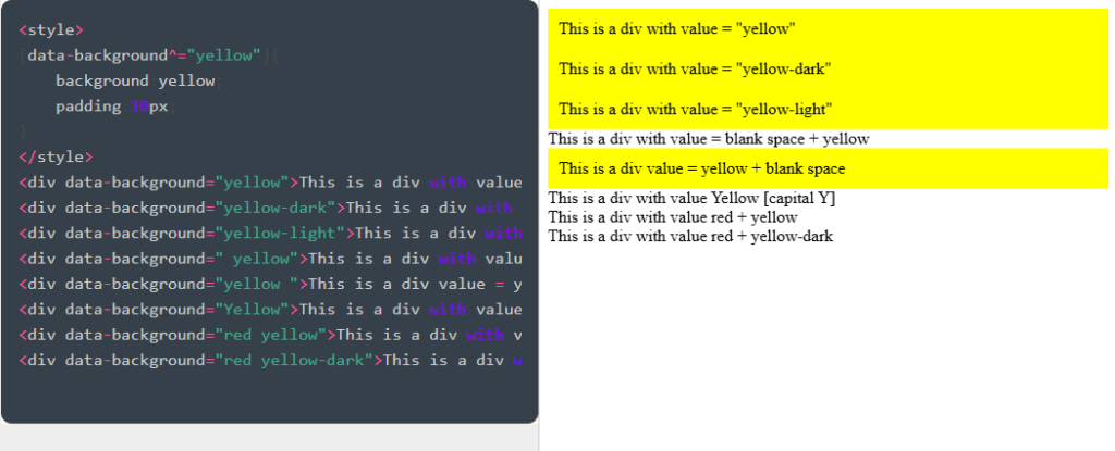 [attr^=value] – Selects elements with prefixed value specified. This works only for the first matched value.