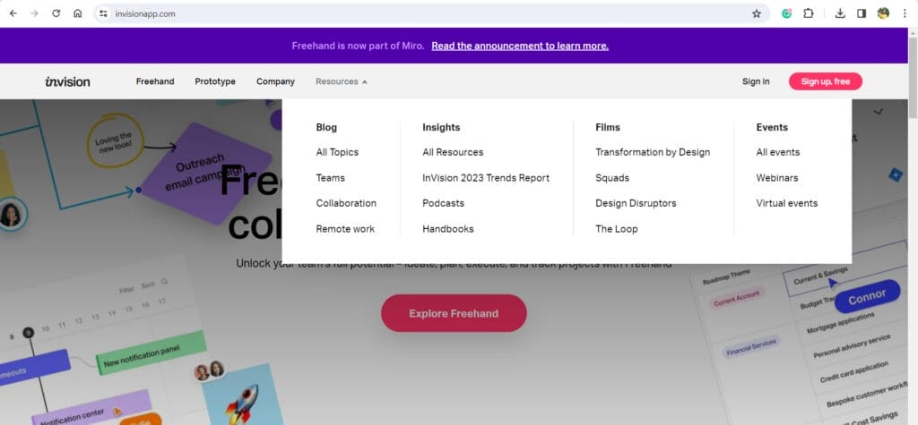 The drop-down menu of the Invision website gives users a clear vision of the website flow.