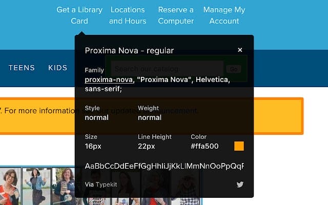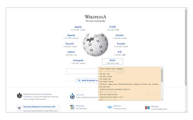 Click on the toolbar icon to display the in-page UI for this purpose, then click on any HTML element you want to see the font information. Note that the in-page UI remains open as long as every other element on the page works. The in-page UI has several information related to the font’s size, style, color, family, etc.