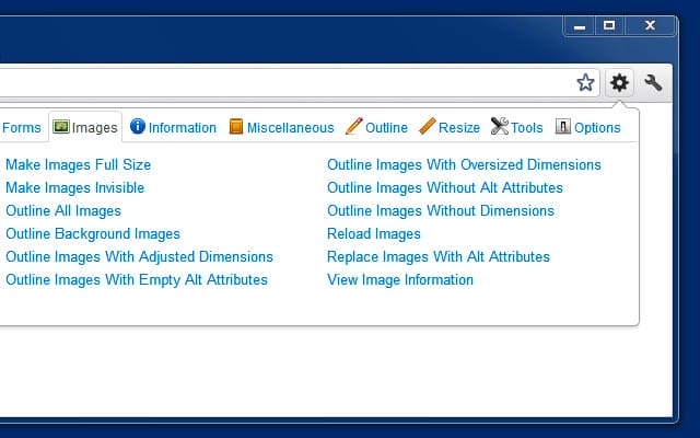 Adds a toolbar button with various web developer tools. The Web Developer extension adds a toolbar button to the browser with various web developer tools. This is the official port of the Web Developer extension for Firefox.