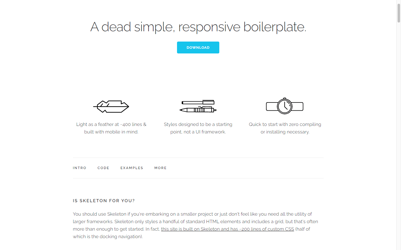 Skeleton is a simple, responsive CSS framework with a small footprint. Skeleton includes everything you need to get started with responsive web design. It has a 12-column grid, sensible typography, and easy-to-use components. It’s perfect for rapid prototyping and small projects. Skeleton is open source and available on GitHub. It has a minimal number of rules, and its grid system makes it easy to create layouts that are both responsive and mobile-friendly.