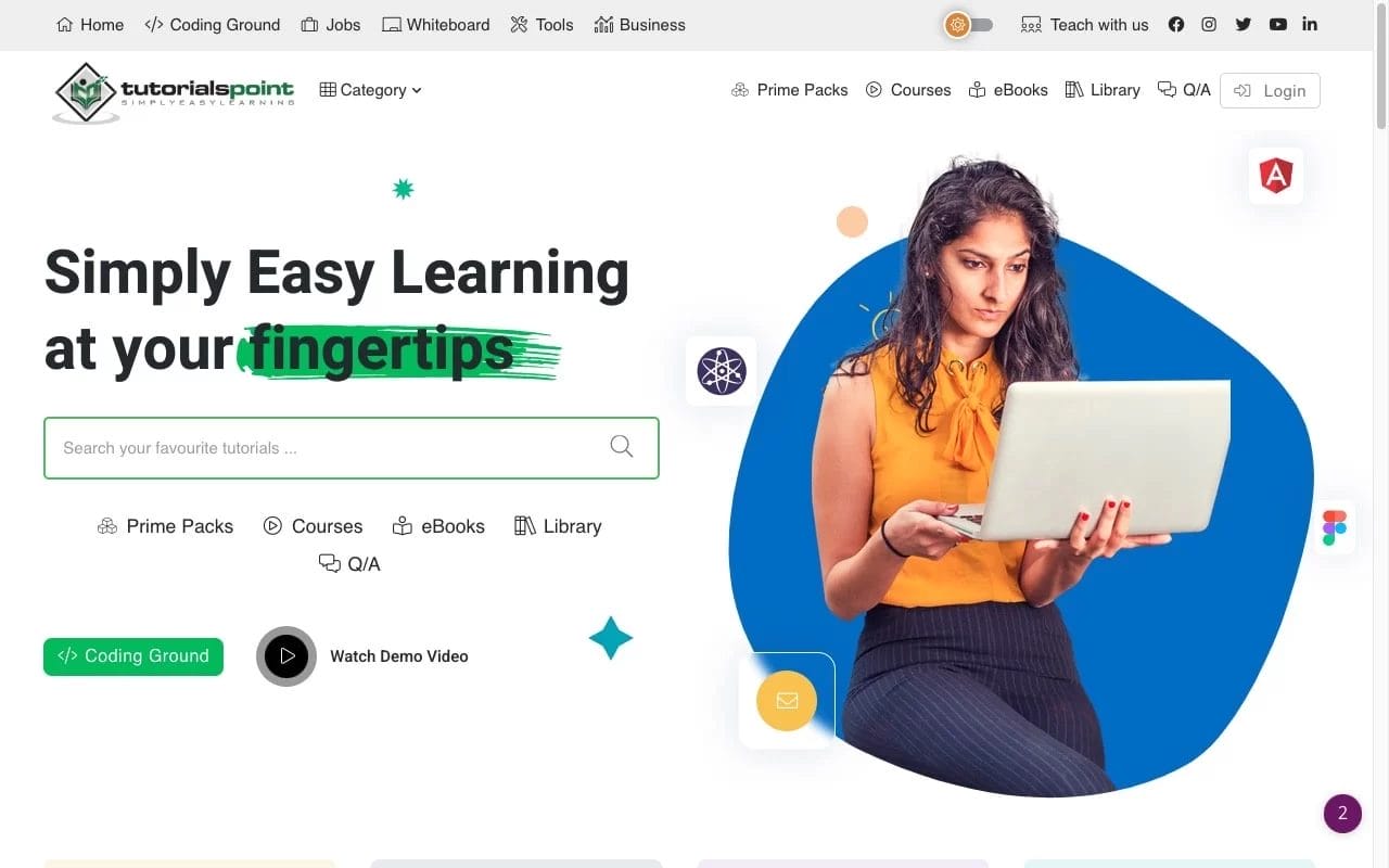 In addition to the tutorials, tutorialspoint.com also has a wealth of resources, such as articlescheat sheets, and video lessons.